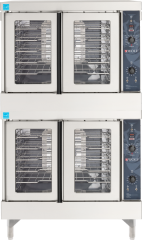 Rely on the most professional results from Wolf's electric, liquid propane, and natural gas powered convection ovens. Efficient, reliable, and versatile, the single and double deck units are second to none. Intuitive controls provide convection oven fan speeds with continuous flexibility to roast, bake, braise, and rethermalize all day long...every day. A large double glass pane window per door enables good visibility without releasing hot air. But when it is time to open the doors, a heavy duty chain drive assists simple one-hand operation; keeping the other hand available to remove your sheet pan safely from the grab-and-go racks.